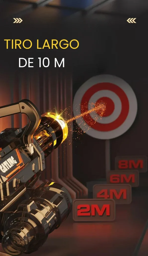 - Diseño Innovador: Barril giratorio, disparo continuo.