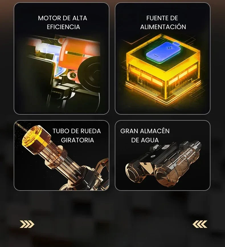 Pistola de Agua Eléctrica con Barril Giratorio y Iluminación LED